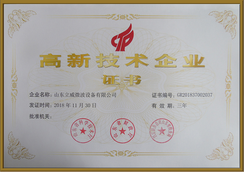 經(jīng)過高新技術(shù)企業(yè)認(rèn)定機(jī)關(guān)嚴(yán)格認(rèn)真的初審、復(fù)審、公示等程序,在眾多申領(lǐng)“高企”的公司中,山東立威微波設(shè)備有限公司成功摘得了“高新技術(shù)企業(yè)”這一桂冠。